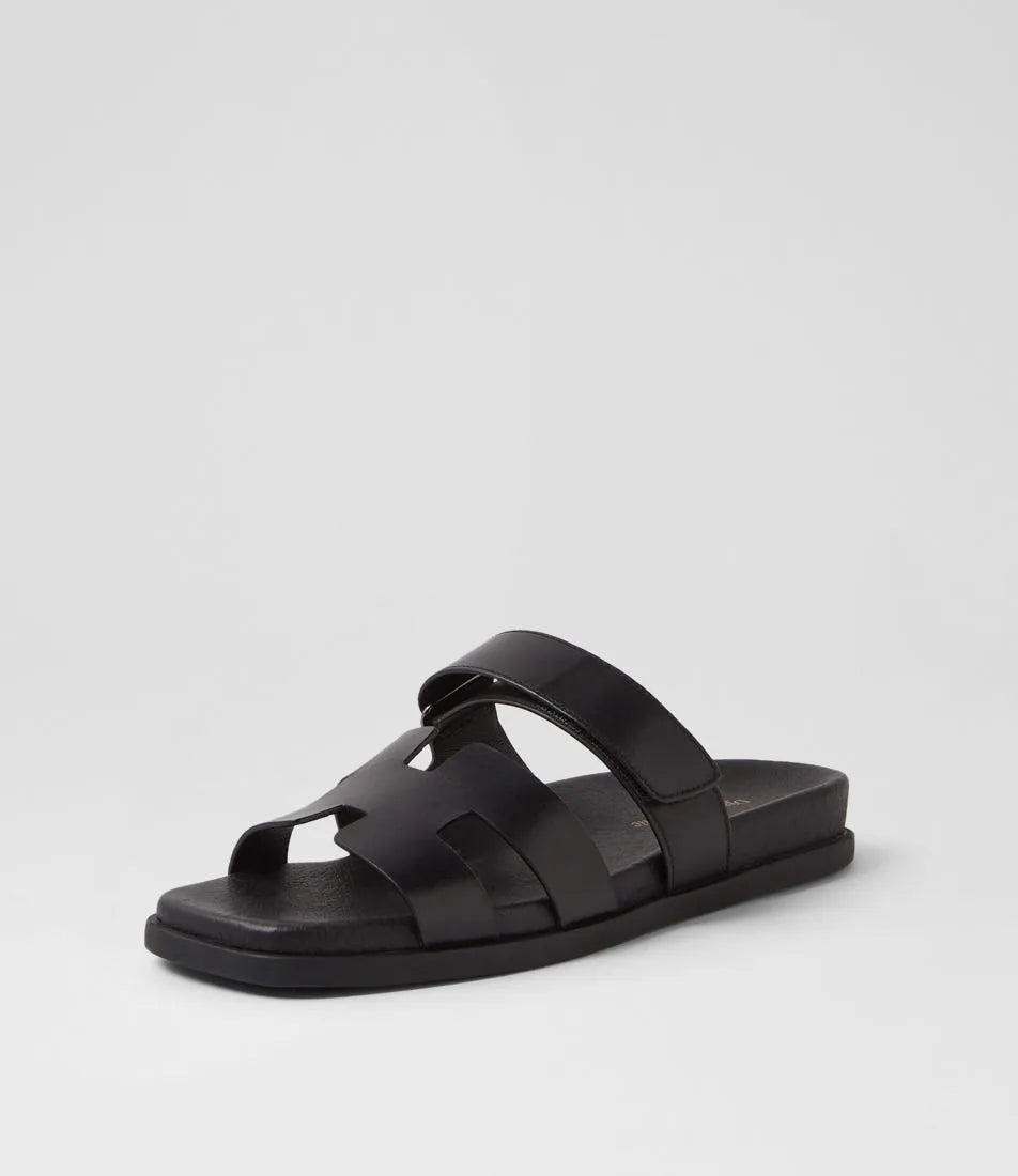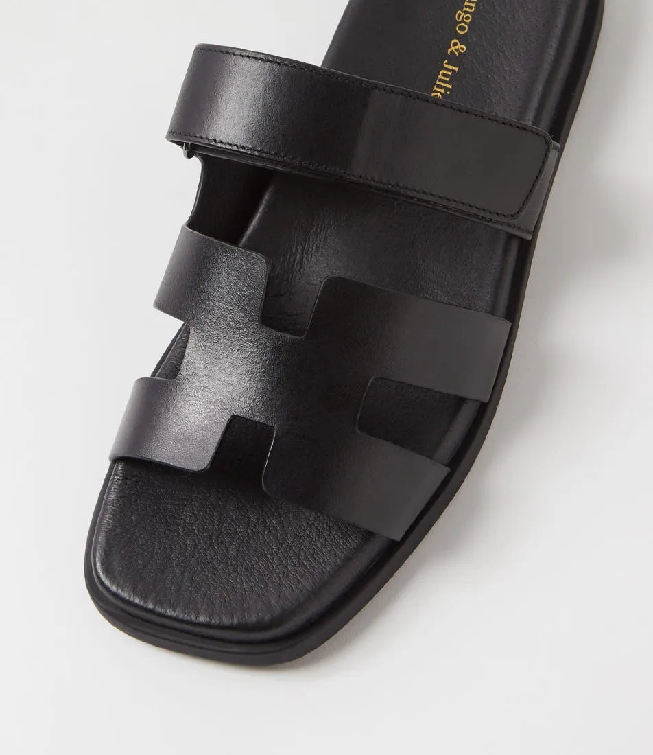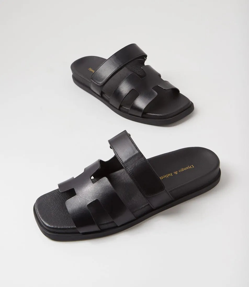 These flat leather sandals are a standout choice for summer. Showcasing a modern geometric silhouette, NODETTE by Django & Juliette is perfect for BBQ get-togethers and casual beach days.